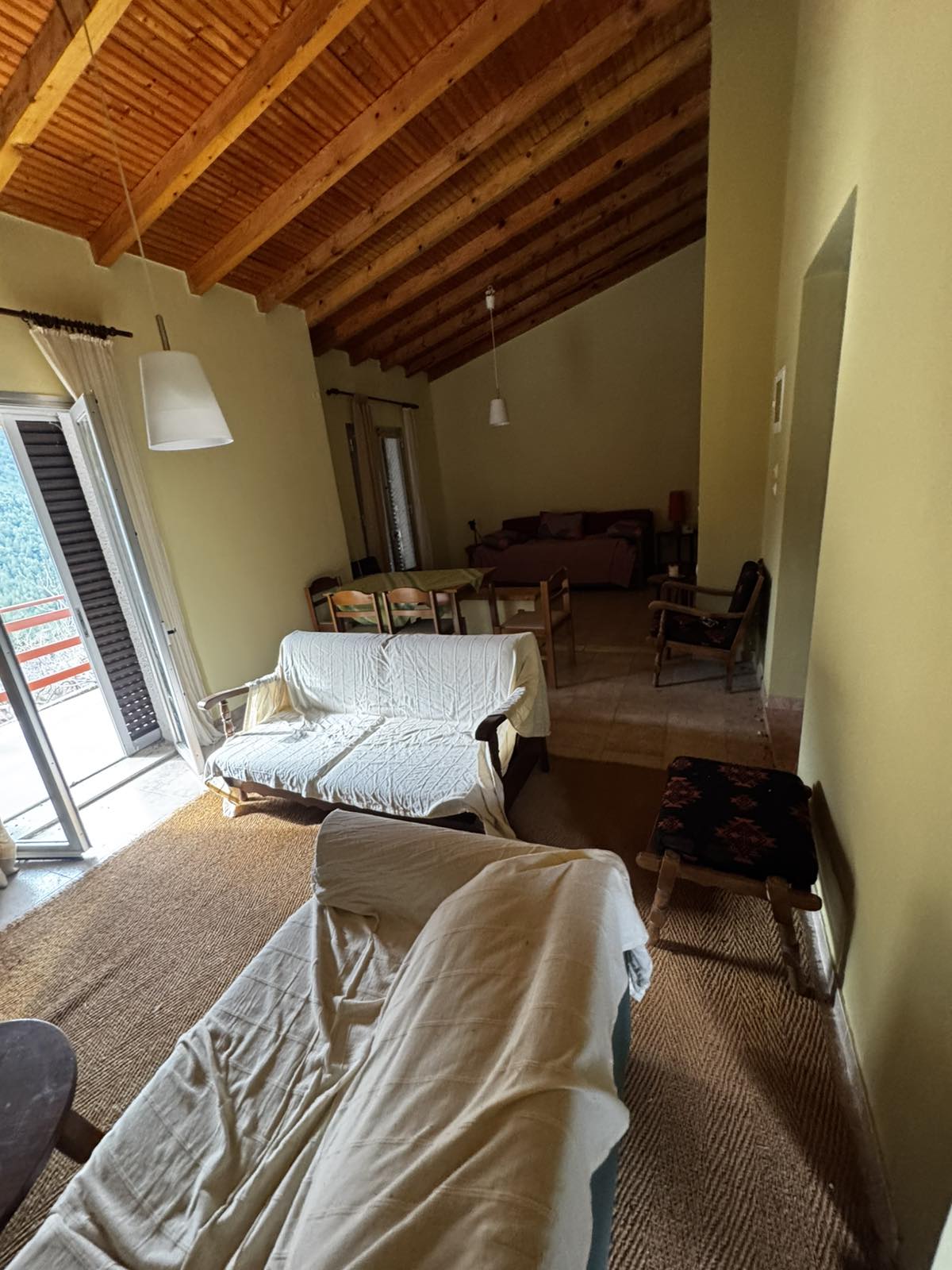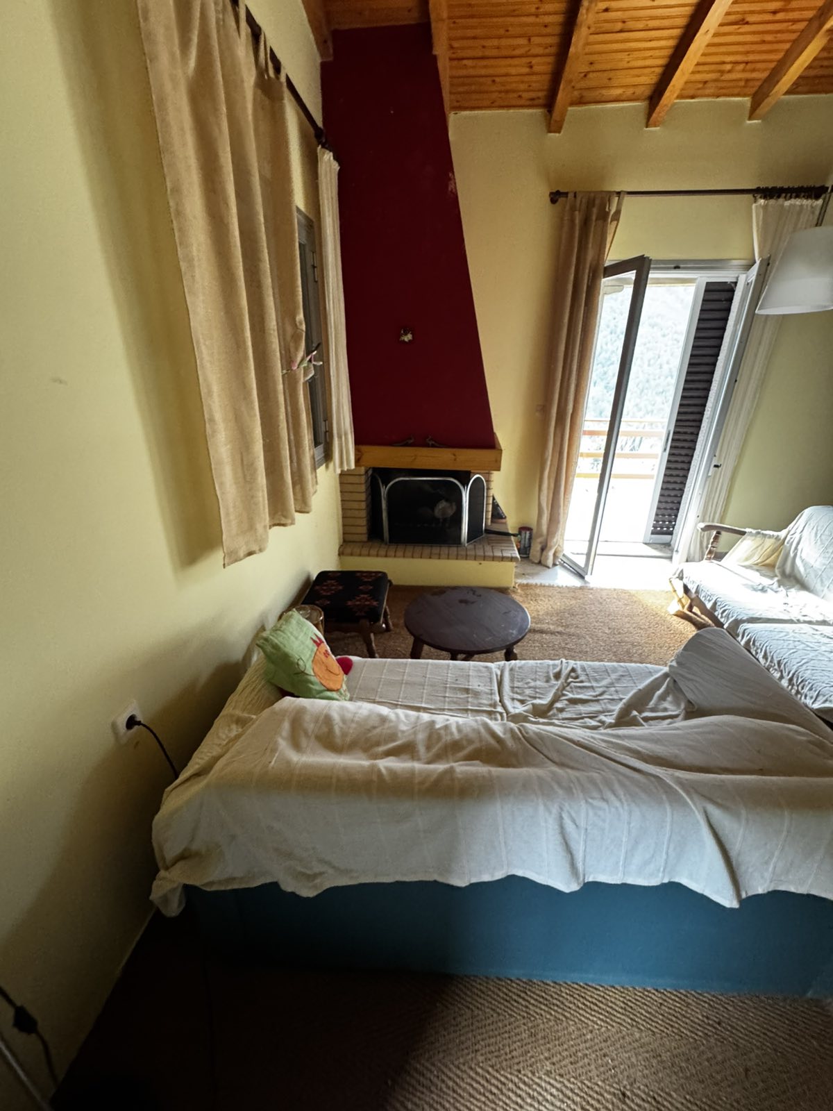 w/c ,κουζίνα και έναν ενιαίο χώρο με τζάκι και ανεμπόδιστη θέα στο βουνό. Η διαρρύθμιση της